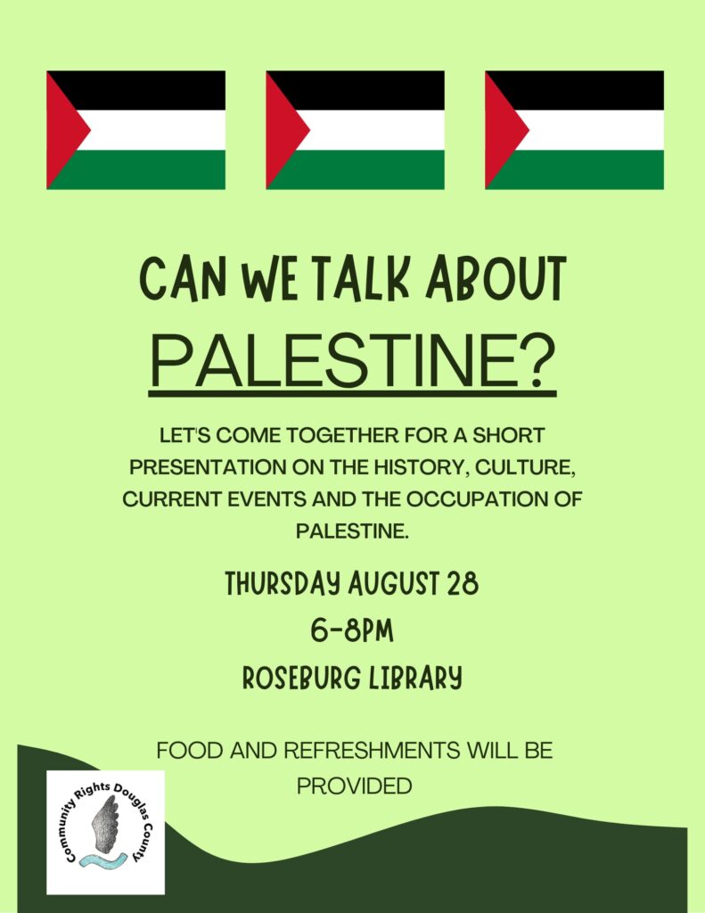 Our next in person community meeting will be Thursday April 16, 2026, 6 pm at the Roseburg Public Library. We hope to see you then.